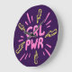 Relógio Grande Slogan feminista do poder feminino, fundo violeta.
