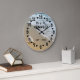 Relógio personalizado com areia costeira e ondas de fundo. Personalize o relógio do casamento com o sobrenome do novo casal para um presente único de aniversário de casamento.