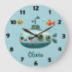 Este relógio de parede personalizado adorável apresenta um submarino divertido com olhos sorridentes alegres, juntamente com bolhas e peixes fofos. Personalize-o com um nome para um toque extra especial, tornando-o um dispositivo único.