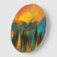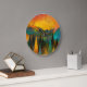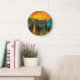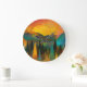 Este nascer do sol sobre o relógio da parede das montanhas certamente adiciona um pop de cor a qualquer sala.