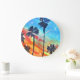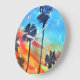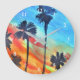 Praia do pôr do sol com palmeiras arte original de Sacha Grossel. A arte do tema da praia, sonhadora do pôr do sol vermelho e laranja no estilo original de aquarela. Tema do pôr do sol do surf.