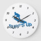 Um design de surfe com um surfista em uma prancha de surfe montando a onda da palavra.