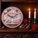 This appealing circular wall clock features a dimensional illustration of a candy display perfect for Valentine's Day. The central motif showcases jars filled with pastel pink and blue candies and brightly wrapped small gift boxes on a wooden shelf. A small figure of Cupid is positioned centrally among the sweets. The words "SWEETHEART CANDY CO." are written prominently in pink script above the display. The design is elegantly framed by a wreath of pink roses and pearl-like decorative elements, all rendered as a highly detailed print.
