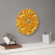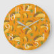 O relógio de Trendy imprimiu um padrão de tacos saborosos, pimenta e cactos num fundo laranja. Perfeito para restaurantes, bares e cozinhas mexicanos