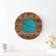 Relógio Grande Teak look Teal Turquoise Blue Grande