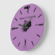 Relógios de decoração de parede de negócios de cabelo e beleza criados com marcações de relógio de tema lindo um secador, pente, pincel e tesoura com uma cor de fundo roxo que você pode deixar como está ou mudar a cor on-line. Personalize o texto do relógio com o nome da sua empresa ou nome profissional e pendura este relógio na sua estação de trabalho ou perto da área de espera.