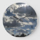 Este relógio apresenta uma bela foto de nuvens dramáticas de tempestade com o sol tentando espiar. O céu azul no fundo, assim como algumas árvores espreitando no fundo.