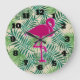 Relógio Grande Teste padrão tropical das folhas e flamingo