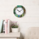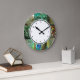 Relógio Grande Teste padrão verde & azul elegante da pena do