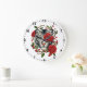 Relógio Grande Tigre branco com Rosas vermelhas - Floral de vida