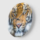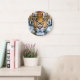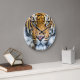Este relógio de parede apresenta um fechamento da face do tigre, onde o tigre está olhando diretamente para você e suas marcas laranja e listradas pretas são mostradas em vibrações e detalhes no excelente. decoração de excelentes para amantes de animais e animais selvagens. Foto tirada em San Diego, Califórnia.