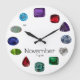 Topaz, Novembro Birthstone Gemstone Clock 1 horas ->Janeiro - Garnet (Cushion cut) 2 horas ->fevereiro - Ametist (Trilhão cortado) 3 horas ->Março - Aquamarine (corte Oval) 4 horas ->abril - Diamante (forma do coração) 5 horas ->Maio - Emerald (recorte de Emerald) 6 horas ->Junho - Alexandrite (Corte de Cushion) 7 horas ->Julho - Ruby (Corte de Pear) 8 horas ->Agosto - Peridot (corte de Rico) 9 horas ->Setembro - Sapphire (Corte de Oval) 10 horas ->Outubro - Opal (corte de Oval Cabochon) 11 horas ->Novembro - Paz (corte redondo) 12 Dezembro - Tanzanite (Cortada pelo Emerald) As pedras de Gemstones são fotos de pedras de Gemstones reais.