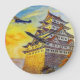 Poster de viagens japonês do ar do transporte aéreo do vintage que mostra um plano da hélice e um templo do pagode.