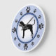 Tratar donos de Walker Coonhound e amantes de cachorros vão desfrutar dessa divertida design, que inclui uma silhueta Treeing Walker Coonhound e pegadas que representam os números na face do relógio, com um fundo azul e um anel azul mais escuro.