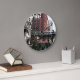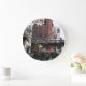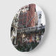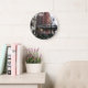 Decore um espaço de estar com este relógio de parede de estilo moderno com numerais pretos que apresenta uma imagem fotográfica do trem elevado do loop de passageiros no centro de Chicago, Illinois. Selecione o estilo do relógio juntamente com a cor dos ponteiros.