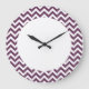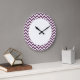 Hip e Trendy Chevron Wall Clock. Este relógio legal apresenta um padrão de zag em zag em púrpura e branco. Adicione texto a este design para lhe dar um toque pessoal.