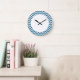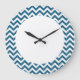 Hip e Trendy Chevron Wall Clock. Este relógio legal apresenta um padrão de zag zag em azul e branco. Adicione texto a este design para lhe dar um toque pessoal.
