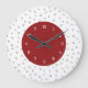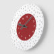 A parede da cozinha é redemoinho com um design moderno em vermelho, preto e branco, criado com um fundo de abstrato na moda no rosto do relógio para decoração moderna. Um belo design para a sua cozinha, sala de família ou qualquer quarto na sua casa que você queira adicionar algum caráter e estilo.