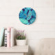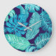 Relógio Grande Tropical Green Blue Leaves Pattern