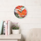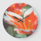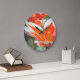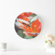 Relógio com tema Floral com foto do primavera. Vemos lindas tulipas vermelhas no fundo verde escuro. Bonito presente para o entusiasta do jardim e amantes da natureza. Pode eliminar o texto "Hora de felicidade" ou substituí-lo pela sua própria mensagem. Para mais modificações (estilo de fonte, cor de fonte, posição de texto), clique em "Editar design".