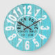 Relógio Grande Turquesa Wood Beach House Números Grandes