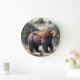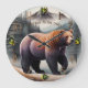Urso Grande a sair de uma floresta nebulosa. Altas montanhas no fundo. Design de aquarela russa. Excelente para a sala de jogos, quarto ou cabine.
