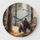 O relógio de ursos grande, de aquarela rustica, tem um design de aquarela. Imagem de um grande urso marrom saindo da floresta. Personalize isso com um nome, local da mensagem.