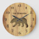 Silhueta de um urso negro em uma prancha russa de madeira. Família personalizável ou nome de alojamento. Estilo russo de chaleira de montanha.