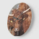 Uma foto de uma raça castanho chocolate de Salers da vaca com chifres. Esta raça originou no Auvergne em France, na cidade do mesmo nome.