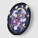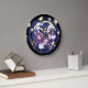 Este relógio bonito tem uma foto de uma pessoa andando de vaca roxa voadora.