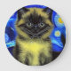 Relógio com um gato siamês na pintura de Van Gogh Starry Night! Esta beleza fofa se coloca em frente a um céu azul noturno com lua e estrelas brilhantes. Um presente aconchegante para amantes de gatos e colecionadores de arte holandeses!