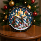 Este é um gráfico festivo, de formato circular, com três velas riscadas, azuis e brancas, no seu centro. As velas têm cera pingando realisticamente e estão cercadas por um arranjo alegre de bagas ocas, vermelhas e doces. Uma pequena faixa abaixo das velas diz "Feliz Natal". O fundo é uma cor azul escura, com vários ornamentos de feriado pendurados de cima, e todo o design está inserido em um quadro circular ouro.