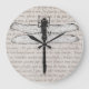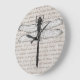 Relógio Grande Vintage Dragonfly e Antique Text Collage