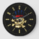Este relógio retrô é impresso com uma imagem de arte de tatuagem vintage de um crânio de chapéu.