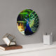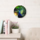 Adicione um toque de elegância à sua casa com o relógio de Vossa Majestade do Clockwork. Este relógio maravilhoso apresenta um pavão majestoso, encalhado no meio de um pano de fundo de água escutadora. As cores vibrantes e a forma graciosa do pavão vão adicionar um toque de luxo a qualquer sala.