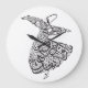 Texto arábico caligráfico negro Elegante (sob a forma de Dervish Whirling) sobre fundo branco. Imagem de Istambul, Turquia.