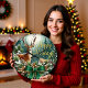 This enchanting clock features a beautiful brown deer standing in a snowy winter forest under the glow of a full moon, surrounded by pine boughs and berries. The text "Happy Holidays" is scripted in sparkling gold glitter, while the bottom is anchored by a large, ornate green bow and pinecones. The design may look real due to the high detail and three-dimensional texture in the artwork.