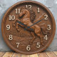 wooden horse vintage carved rustic equestrian country style wall art, horse lover gift, farmhouse animal clock, classic wooden timepiece, carved horse design, western home accessory, antique horse clock