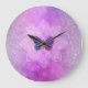 Large Wall Clock - Energy Enhanced por Anna Rosa: === Texturas Celestiais de Abstrato Lindas Místicas, Marcado por uma brilhante Lavanda roxa cor-de-rosa magenta, com uma minuciosa meditação branca Mandala com uma Dourada cor-de-rosa e uma borboleta cor-de-rosa.
