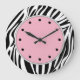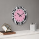 A parede de zebra tem relógios com padrão preto e branco de faixas de zebra e fundo cor-de-rosa na face do relógio desta parede, design do relógio do animal para a sua cozinha, banheiro ou qualquer quarto na sua casa que você queira adicionar alguma cor e personagem. Excelente para afrodescendentes ou amantes da vida selvagem.