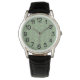 Este relógio masculino tem um design de deco de arte de triângulos e diamantes que se parecem com tigres em verde claro e verde sábio.