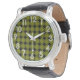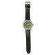 Este relógio masculino tem um design moderno do século médio de diamantes negros sólidos dentro de diamante preto em um campo de verde.