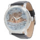 Cabeça de hamster longo e marrom, puxando para fora do relógio de bolso de jeans azuis