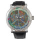 Wall art e sinal de paz em Praga. Precinta preta de couro com fecho de fivela. Água resistente a 30 metros.