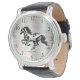 Esta é uma única "One of a Kind" Horse Watch! Ele apresenta uma Silhueta de Cavalo Negro galopante em um fundo prateado! Design de Arte Original Do Artista Kerry Miller!