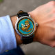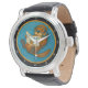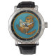 TThis image is a circular wall clock with a black rim and white numbers. The clock face features a whimsical illustration of a brown otter wearing snorkeling gear and reading a newspaper titled "OTTER TIMES" while floating on its back in blue water. The water shows gentle ripples and bubbles, and the entire scene is contained within a golden inner frame.