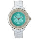 Um padrão delicado, de flocos de neve herdados, sobre fundo sólido, com uma textura tecida Ikat estriada - floco de neve aqua leve sobre uma turquesa profunda / chão de pavão