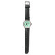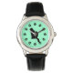 Imagem gráfica de gato preto no centro, com pata impressa nas posições de cinco minutos. Personalize a cor de fundo ao seu gosto.