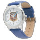 Este relógio personalizado para crianças apresenta uma insígnia encantadora de bombeiro. No centro da insígnia está um caminhão de bombeiros em estilo de desenho animado infantil divertido e vermelho brilhante. A faixa superior diz "Líder do Esquadrão" enquanto a parte inferior é para o nome do seu pequeno.