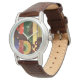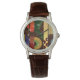 Perspectiva de homens, mulheres e eWatch de crianças com números brancos. Perspectiva é um desenho abstrato criado por Vexenwraith e consiste em formas multicoloridas sobre um fundo marrom.